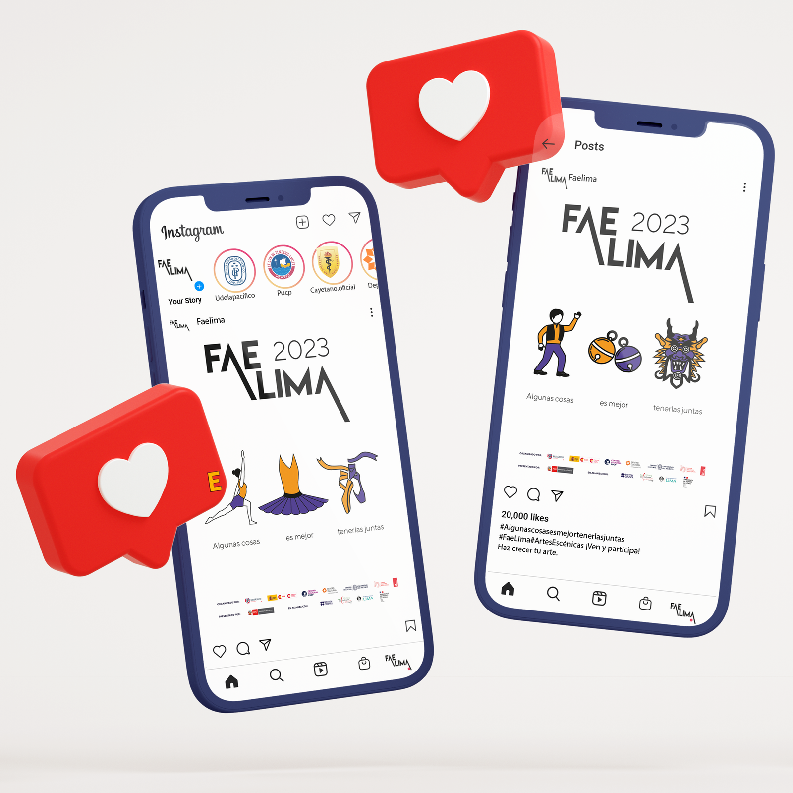 Participé de un concurso para una campaña del FAE, la cual tenía como objetivo promover la asistencia a los espectáculos que se brindó en Marzo del 2023. Para ello, diseñé piezas gráficas y mock ups. El nombre de la campaña era: “Algunas cosas es mejor tenerlas juntas”, participa en el FAE 2023.